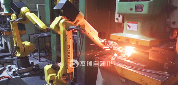 The forging robot can meet the automatic production requirements of metal forging, automatic feeding and unloading, spraying, releasing agent, trimming and deburring.