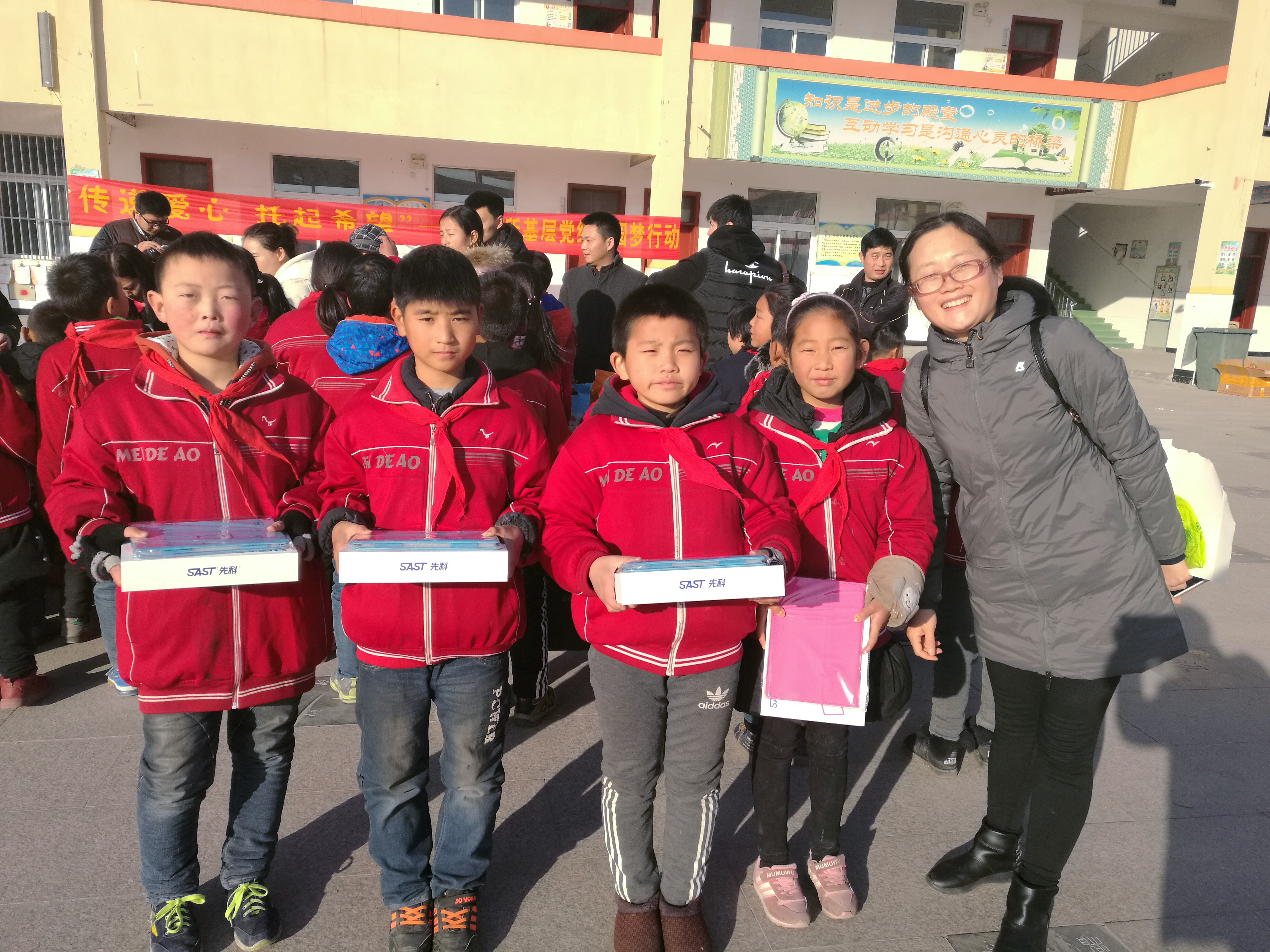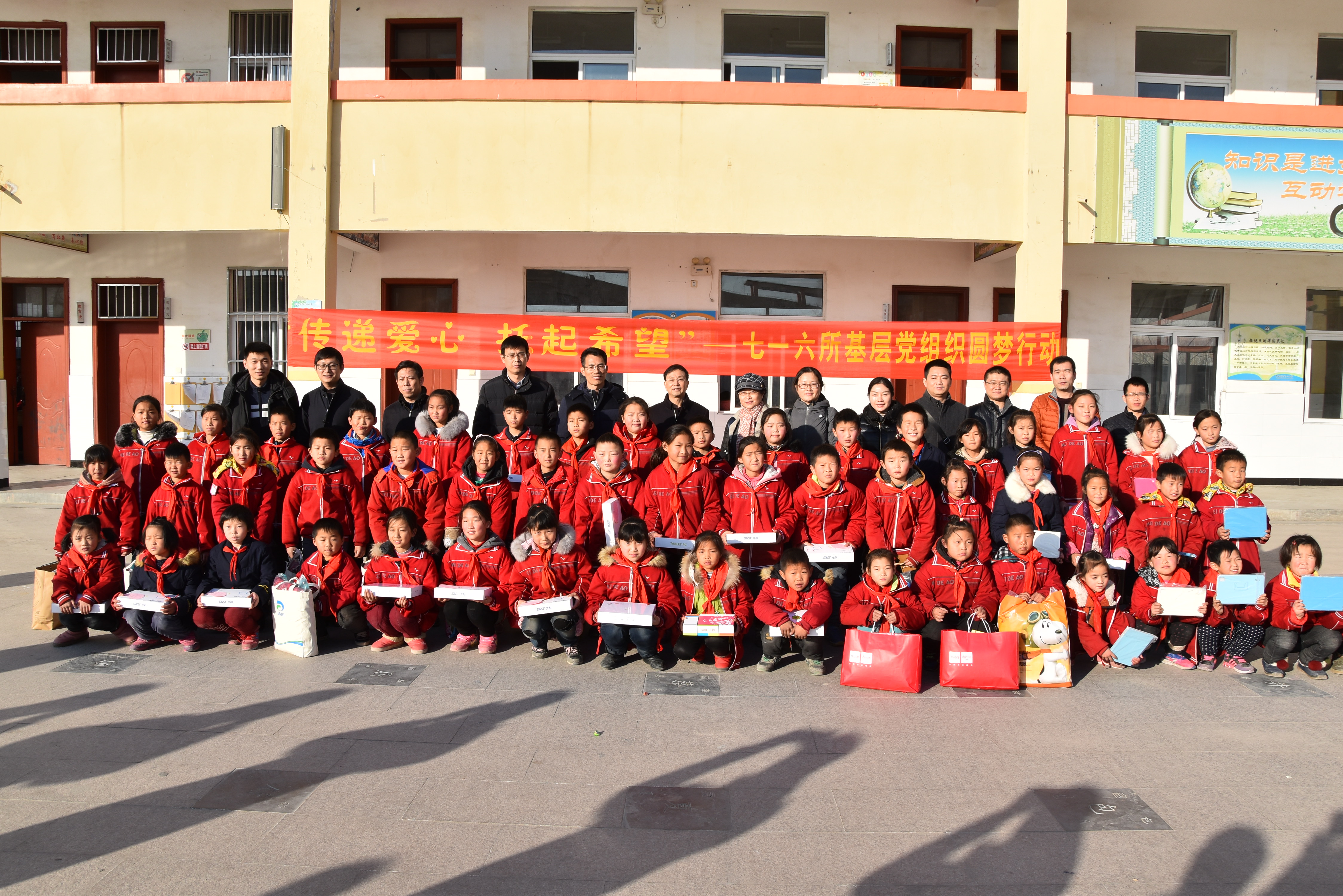 12月8日,杰瑞自動化黨總支和七一六所其他基層黨組織共赴豐縣順河鎮(zhèn)中心小學(xué),與豐縣領(lǐng)導(dǎo)、順河鎮(zhèn)領(lǐng)導(dǎo)、校方及豐縣幫扶隊員一同為豐縣順河鎮(zhèn)中心小學(xué)的貧困孩子們送去精心準(zhǔn)備的禮物,幫助60多個家境貧寒的小朋友實現(xiàn)了小心愿,所紀(jì)委書記王忠能及黨群工作部、所團委有關(guān)人員參加了此次圓夢行動。